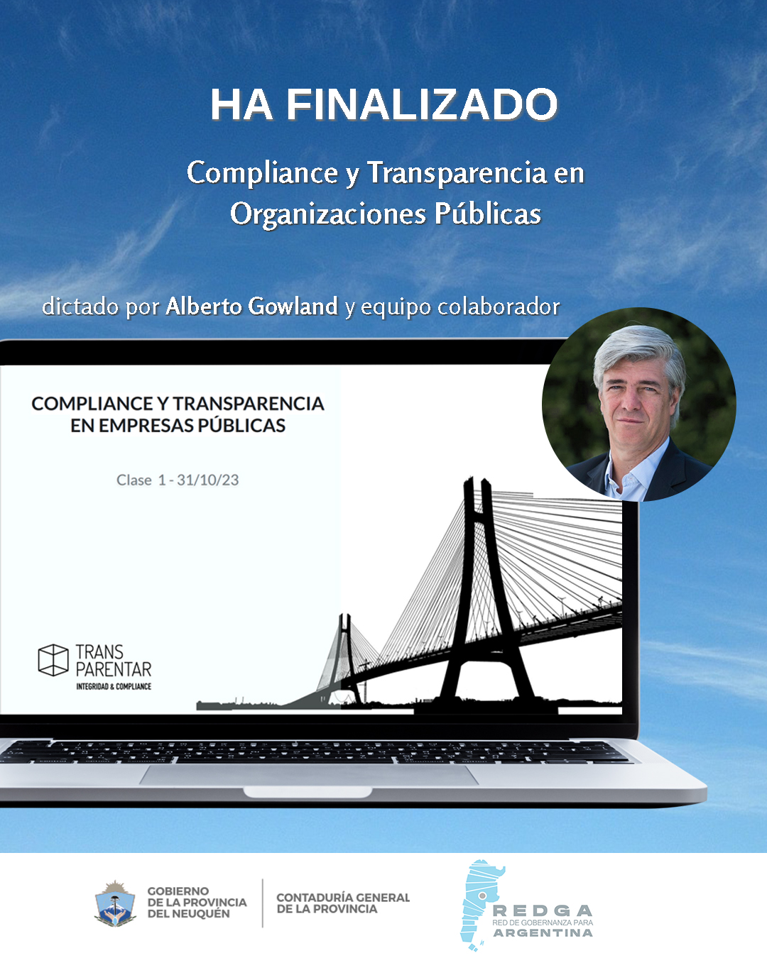 En el marco del Convenio firmado entre la REDGA y la Contaduria General de la Provincia de Neuquén se ha dictado el curso sobre Integridad aplicada a un importante grupo de profesionales de la Provincia. El curso permitió relevar experiencias y ver en casos concretos la aplicación de las normas de integridad que promueven distintas organizaciones para asegurar un mejor compliance y consecuentemente una mayor transparencia en el uso de los recursos públicos. Gracias Alberto Gowland y todo tu excelente equipo de TRANSPARENTAR por este gran aporte como así también a Vanina Barrionuevo y María del Carmen Sabugal por seguir dando soporte y contribución en las actividades de capacitación de la REDGA. Los invitamos a seguir siendo parte de la [#buenagobernanza](https://www.instagram.com/explore/tags/buenagobernanza/?hl=es).